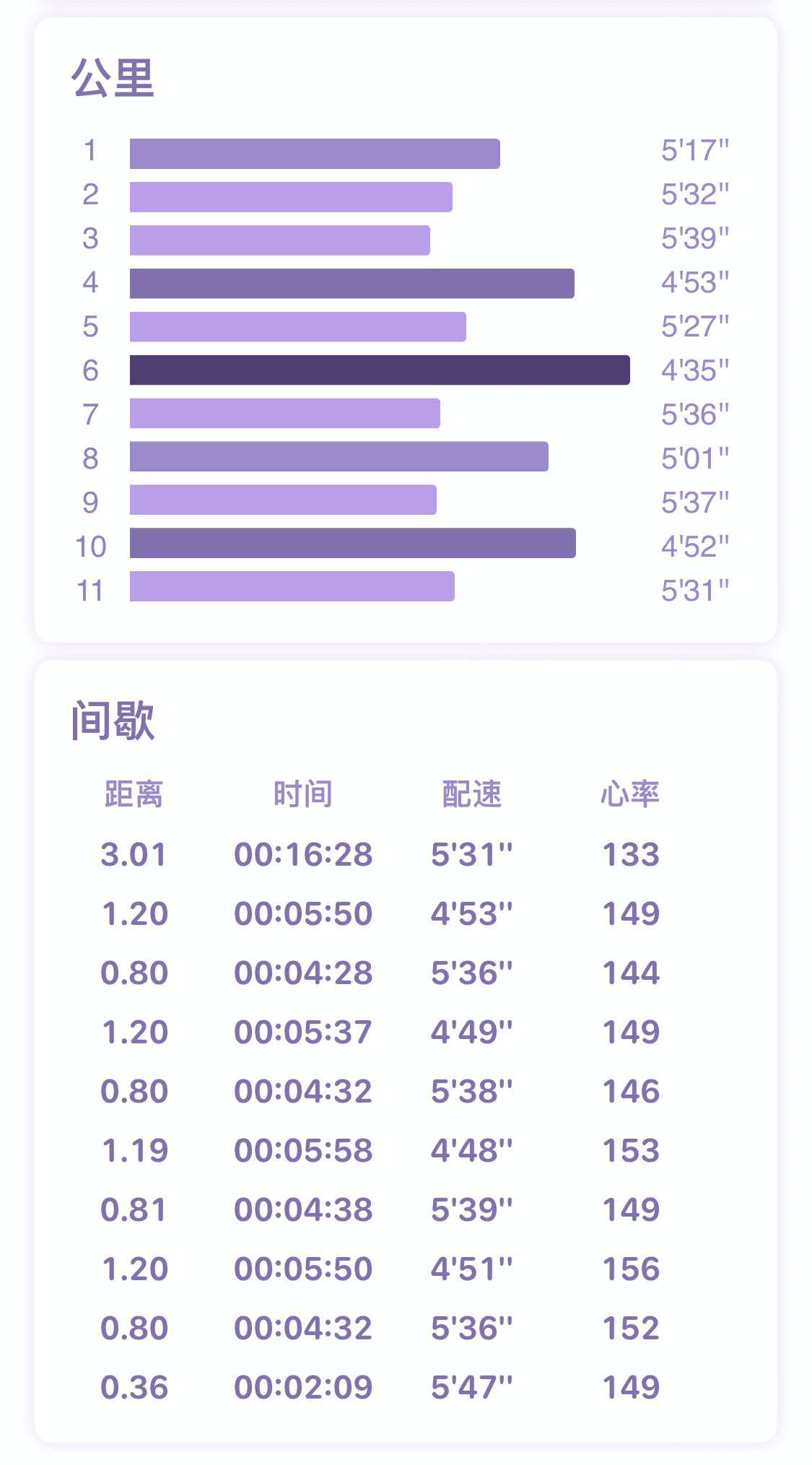 以下は1週間の毎日のランニング距離テーブルとトレーニングプラン管理エントリです。週間ランニング距離ビューは、週内の日々のランニングトレンドを直感的に視覚化し、ユーザーが一貫性と安定性のあるトレーニングを維持することを思い出させます。