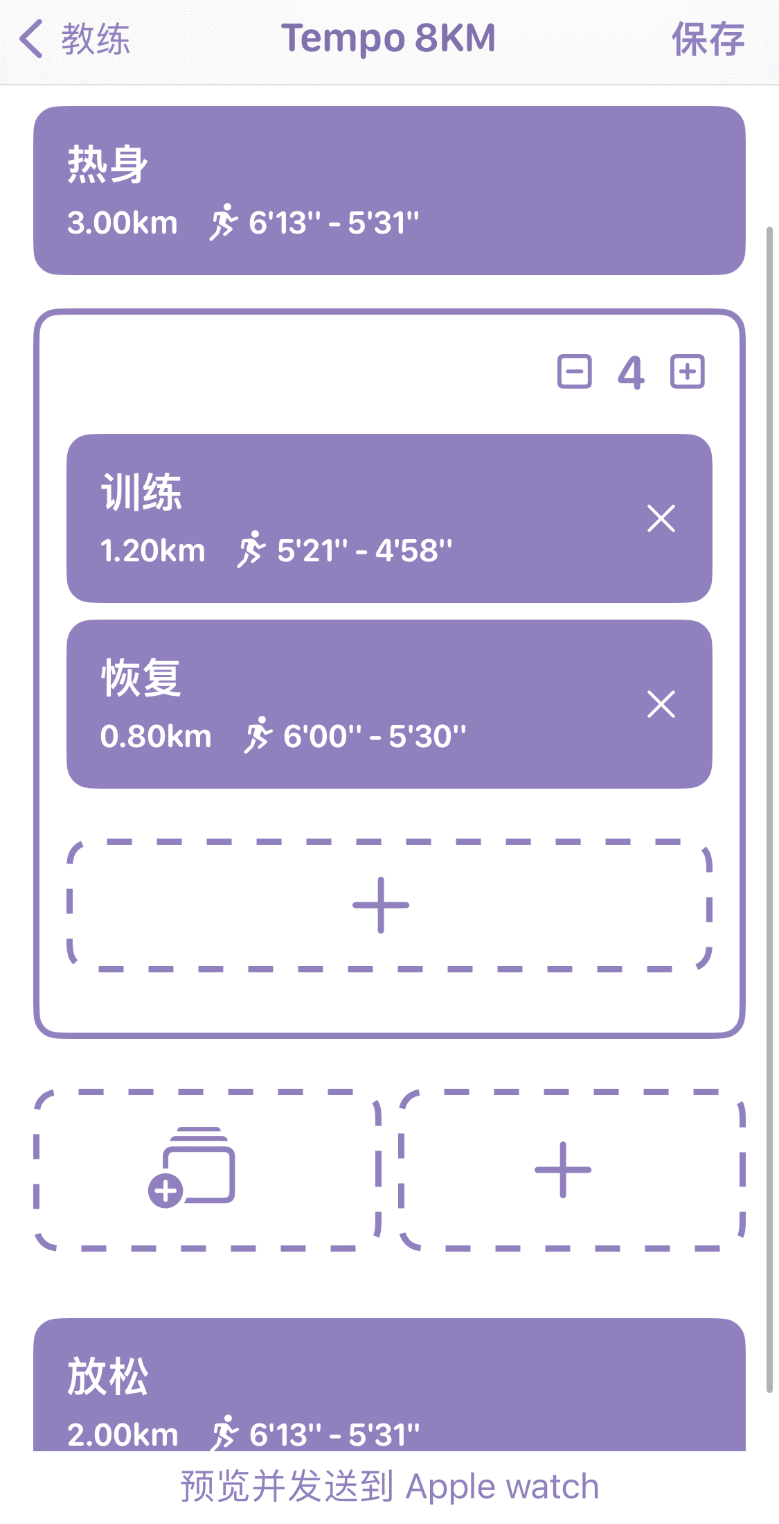 トレーニングプラン管理エントリでは、ユーザーは自分のランニングコンテンツを管理できます—Xキロメートルのイージーラン、800m×4のインターバルランなど。各ランニングフェーズについて、Appleはペースと心拍数の範囲設定をサポートし、それがウォッチに同期され、ラン中にプランから逸れたときにアラートを提供します。