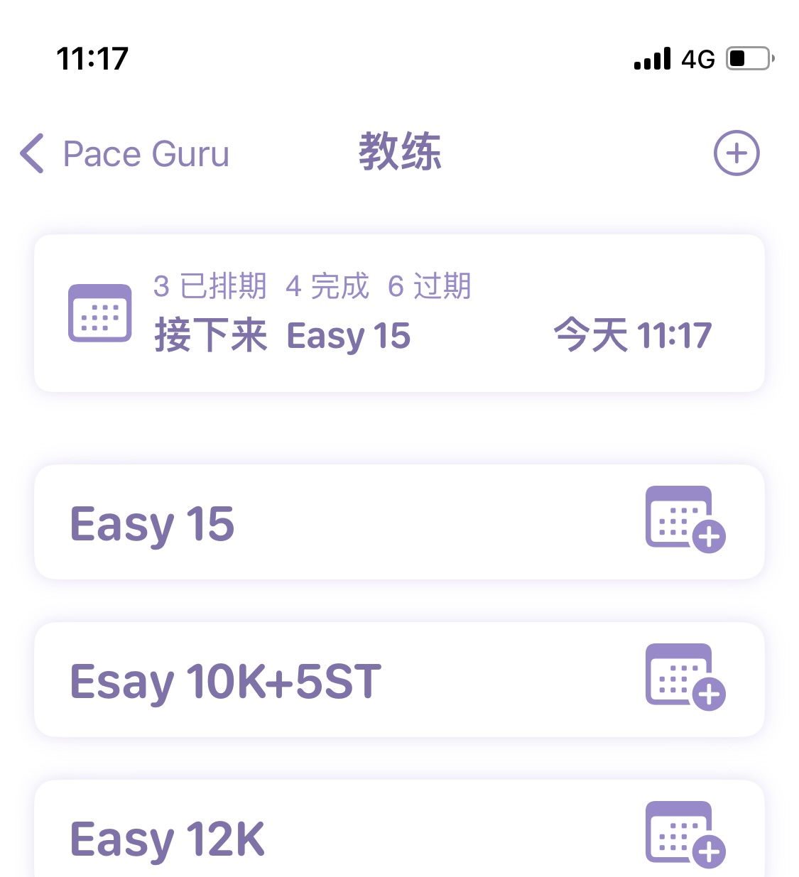 除了计划列表之后,为了对跑步计划进行比较显眼的提示,我们在 Pace Guru 的首页也添加了一个下一项计划的显示。